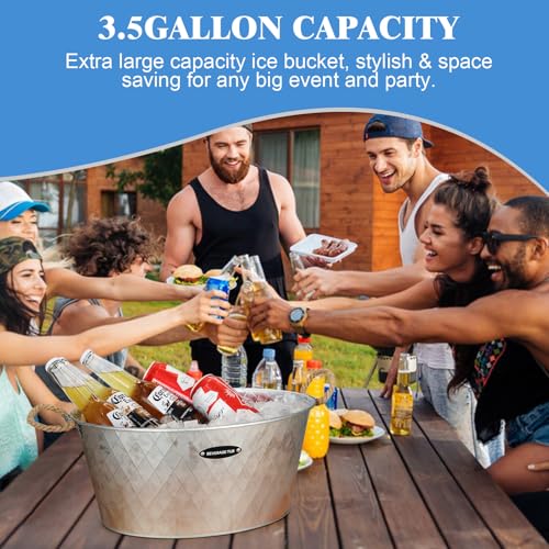 2 Pcs Beverage Bucket with Handles -IHOO Large Ice Buckets for Parties 3.5 Gallons (13.5 L) -Galvanized Drink Buckets for Indoor or Outdoor Bars 15.55″ x 7.28″