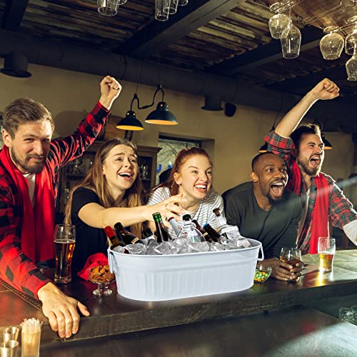 Lallisa 5.3 gallons Galvanized Beverage Tub Galvanized Bucket Metal Ice and Drink Bucket with Handles Tub for Parties Farmhouse Home Pool Bar(White,2 Pcs)
