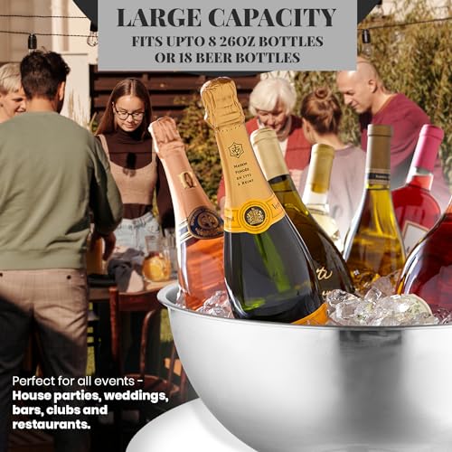 Premium Ice Bucket For Parties – Party Sized 12L Beverage Tub With Scoop – Silver Stainless Steel Ultimate Champagne Bucket For Celebrations- Insulated Punch Bowl -Large Ice Bucket For Drinks