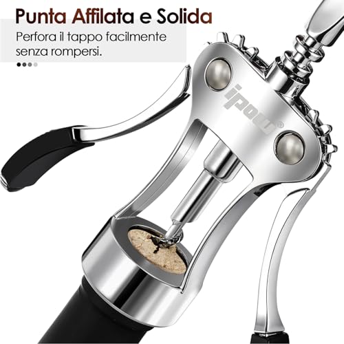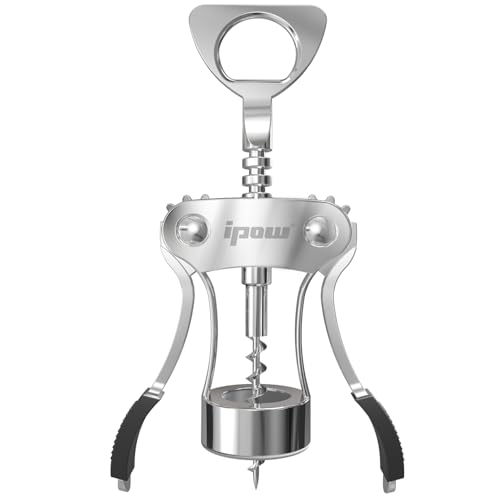 IPOW Wine Opener, Zinc Alloy Wine Bottle Opener, Wing Corkscrew Heavy Duty, Manual Multifunctional Cork Screw for Waiter, Silver