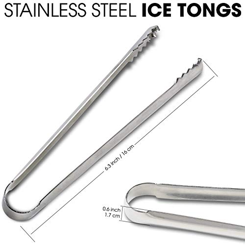 DUGATO Ice tongs, 2pcs Small Tongs 6.3 inch Stainless Steel with Sharp Teeth Make Grabbing Ice Easy, for Ice Bucket Ice Sugar Cubes Coffee Bar Food Serving