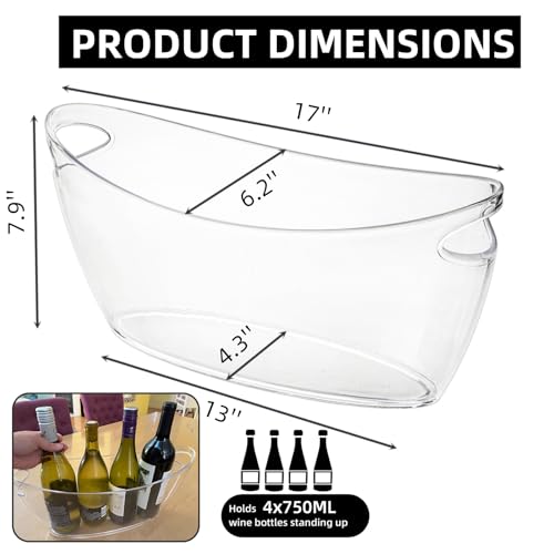 Ice Bucket for Parties, Clear Acrylic Champagne Bucket with Handle, 6 Liter Beverage Ice Tub, Wine Beer Drink Buckets for Mimosa Bar, Cocktail Beer Bottle