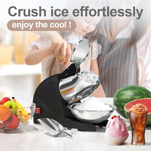 Shaved Ice Machine 380w Snow Cone Machine 3 Stainless Steel Blades Ice Shaver Machine Electric Ice Crusher 280lbs/hr Snow Cone Maker for Home and Commercial with Ice Pick(Black)