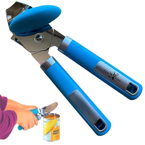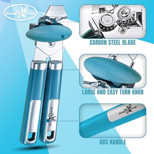 Manual Can Opener for Seniors – Easy Turn Knob, Magnetic Lid Lifter, Sharp Carbon Steel Blade, Comfort Grip, Heavy Duty Kitchen Tool – Blue by DIVIDE STAR