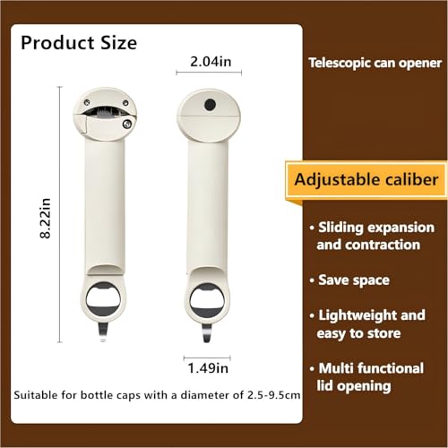 High quality materials & Retractable: Retractable opener is made of high quality nylon and stainless steel, for durability and Strong resilience. it can open a variety of bottles, cans, and other containers. retractable and elongated, suitable for different cap sizes, maximum useable cap diameter 1-3.8 in , basically can open 90% of the daily bottle caps