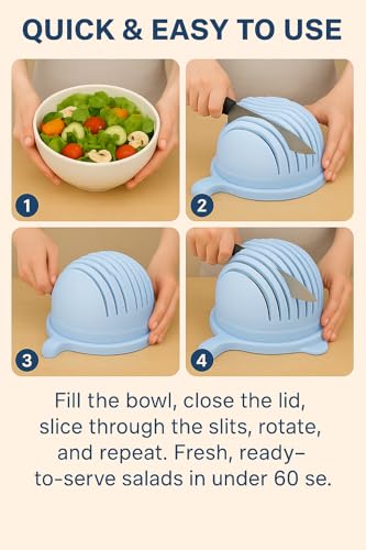 EASY CLEANING AND MAINTENANCE: Say goodbye to cumbersome clean-up tasks. This Salad Cutter Bowl is dishwasher safe, promoting easy maintenance and a swift return to your culinary adventures. Its design ensures a quick clean, ready for its next use.