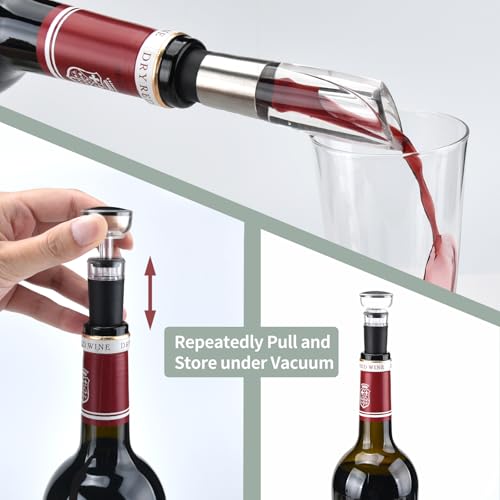 Value-packed Combo: Unleash the best wine accessories partners- wine aerator pourer spout and wine bottle stopper. Both cone-shaped designs are tailored to fit seamlessly on any champagne cocktail beer whiskey wine bottles. Silicone body ensures a strong seal, no drips, no spills.