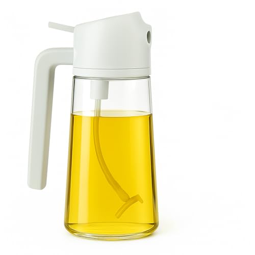Oil Sprayer for Cooking 2 in 1, Glass Olive Oil Mister Spray Bottle, 470ml/16 Oz Spritzer for BBQ, Air Fryer, Salad, Baking, Grilling & Frying