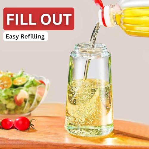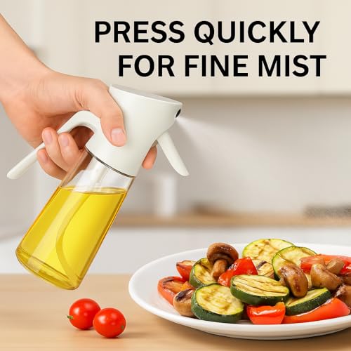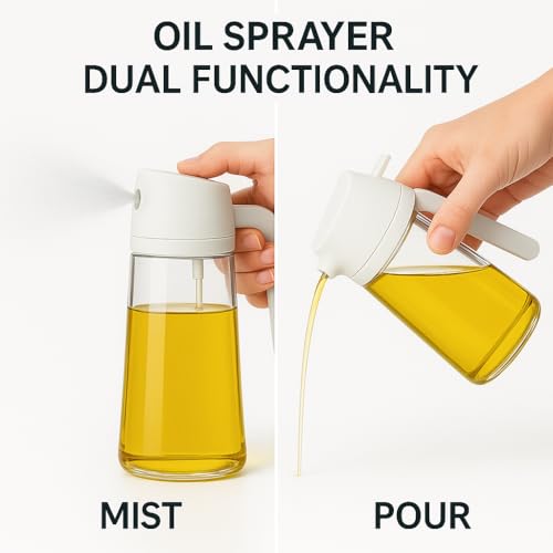 1.Large 470ml Oil Sprayer Bottle – This 2-in-1 glass oil dispenser features both fine mist and steady stream spray modes. Perfect for air fryer, salad prepping, BBQ, grilling, frying, and baking with precise oil control.