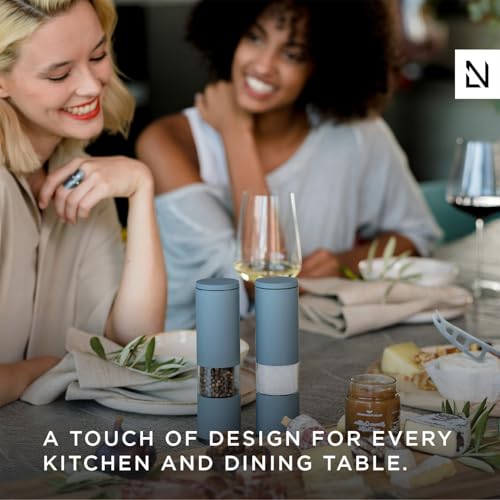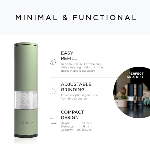 LARS NYSØM Salt and Pepper Grinder Set 2 pieces I Salt Pepper Mill with Adjustable Ceramic Grinder I Design Spice Grinder Set Manual (Sage Green)
