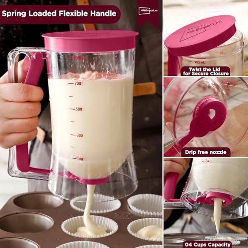 The MA Emporium Pancake Batter Dispenser is your go-to baking tool for creating perfect mini pancakes, cupcakes & more with ease. This versatile pancake batter dispenser features a 900ml (4-cup) capacity and an ergonomic squeeze handle for mess-free pouring. Ideal for muffin mix, crepes & funnel cakes. itโ€™s the perfect tool for every baker.