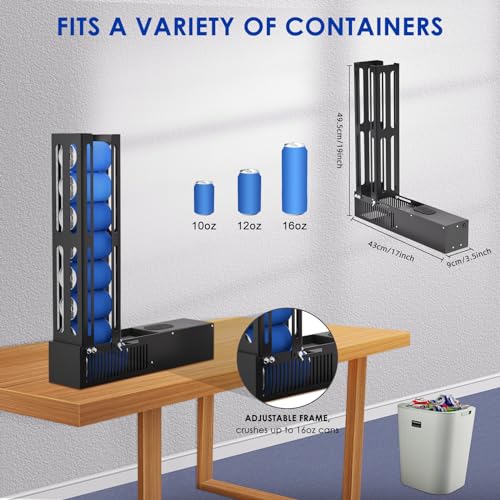 COMPATIBLE WITH MULTIPLE SIZE – For use with standard 12 oz and 16 oz aluminum cans and 6 oz-12 oz plastic water bottle; Maximum Can to be crushed: OD 3.3 inch and Height 7.2 inch. Our electric can crushers make recycling aluminum soda, beer and other beverage cans a breeze