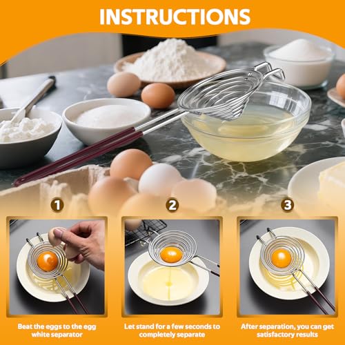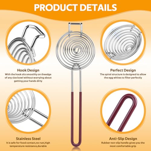 Innovative Design:Featuring a unique spiral structure,this egg separator ensures smooth and precise filtration of egg whites without harming the yolk.The built-in hook fits securely on any bowl,preventing spills and keeping your hands clean while keeping eggshell fragments out of your mixture.
