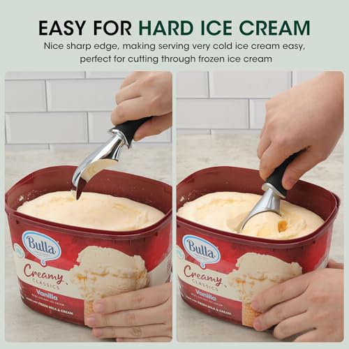 Scooping Through Ice Cream with Ease: The edge of the scoop is specially polished to make sure that the moment the scoop cut through even hard ice cream is easy and silky, allowing you to enjoy the ice cream easily instead of struggle with a clumsy scoop