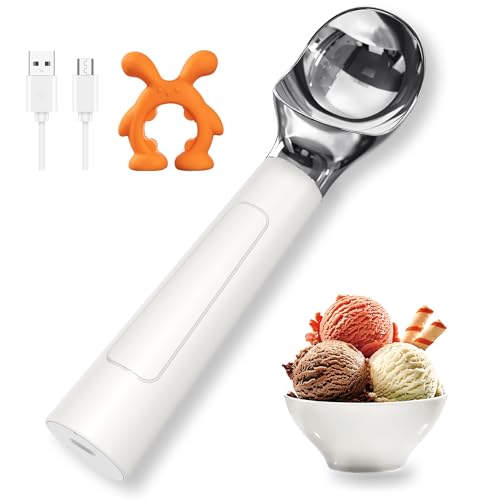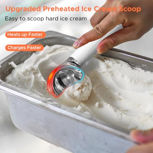 NEWEST Heated Ice Cream Scoop, Rechargeable Electric Ice Cream Scoop, Maximum Heating up to 158℉ for Hard Ice Cream (White)