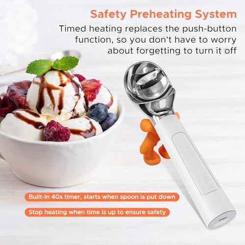 【Automatic heating】 Just hold your hand on the handle to start heating automatically, no complicated buttons, stop heating 40s after you put down the ice cream scoop after use, ready for the next use. Automatic timing device makes it stop heating once the time is up, no need to worry about forgetting to turn off the switch, scientific design makes the operation easier and safer.