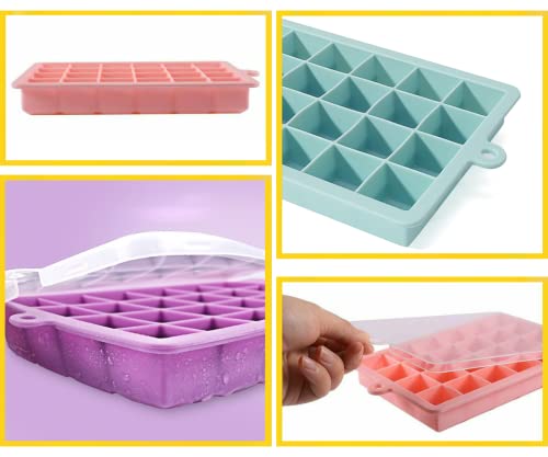 Ice Cube Tray, 3 Pack Silicone Ice Cube Molds, Easier to Release, BPA Free for Alcohol/Coffee/Beverages (Pink, Light blue, Purple)