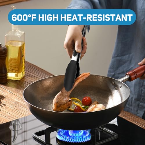 Essential Kitchen Tools: This tongs for cooking comes with 2 sizes, 9 inch and 12 inch. Perfect for your different kitchen tasks, indoor or outdoor use, grilling, flipping burgers/fish, cutting roast meat, pick up noodles and eggs, or used as BBQ turner or salad serving and much more.