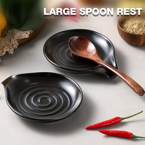 Spoon Rest for Stove Top, 6.1″ Large Ceramic Spoon Holder for Kitchen Counter Decor, Heat-Resistant Cooking Utensil Rest, Coffee Spoon Holder, Black Kitchen Spoon Rest for Spoon Ladle Spatula