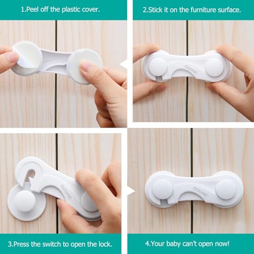 Cabinet Locks – Adoric Life Child Safety Locks 4 Pack – Baby Safety Cabinet Locks – Baby Proofing Cabinet Kitchen System with Strong Adhesive Tape