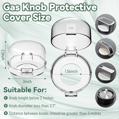 Attention Buyers!!!Buyers, please note to measure the size of your gas knob,Please measure your stove knob size first: The diameter of the gas knob must be less than 1.56 inches, and the height must be less than 2.1 inches. This applies only to knobs without a bottom seal.