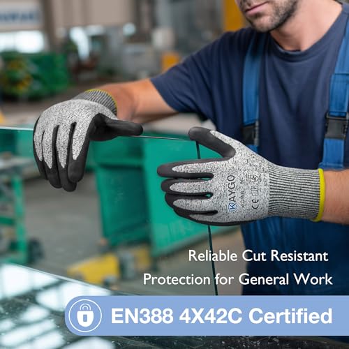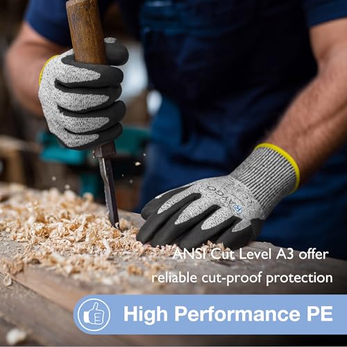 Superior Cut Resistance and Durability: Made from High-Performance Polyethylene (HPPE), Glass Fiber, and Spandex, these gloves are ANSI Cut Level A3 and EN388 4X42C certified. They offer reliable cut-proof protection for medium/heavy-duty work