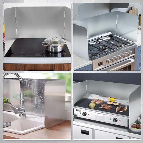 Effectively Prevents Grease & Oil Splatters: This stove splatter guard acts as a protective splash shield, effectively containing oil splatters and food residues during frying and cooking. It keeps your stove, countertops, and walls clean while acting as a grease splatter guard to protect food. Its excellent heat insulation also prevents damage to nearby items