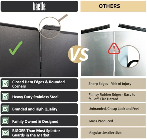 [GIFT for Cooking Enthusiasts]: The Baetle XL Splatter Guard helps make cooking more enjoyable and less messy. A thoughtful gift for friends or family who love to cook but want an easier cleanup. Ideal for home chefs, professional set-ups, grilling enthusiasts, and anyone who enjoys stress-free cooking!!