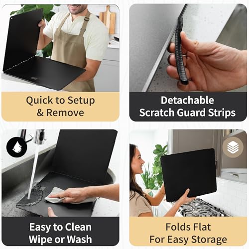 [Foldable Design for Easy Use & Continuous Protection]: The panels open and close smoothly for quick setup and compact storage. But you don’t need to remove them after every cooking session; leave them on your cooktop for ongoing cooking protection. Simply wipe with a damp cloth to clean. Keeps your cooking area cleaner without taking up extra counter space.