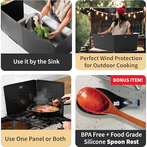 [Extra-Large 2-Panel Coverage – 15.7 inch x 15.7 inch]: Enjoy superior stovetop protection with 2 wide folding panels that shield your kitchen from popping oil, sauce splatter, and grease mist. Perfect for oversized pans, griddles, cast-iron skillets, and deep frying setups