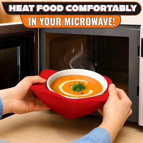 Universal Size 7.5″×7.5″ Hot Bowl Cozy Holder: Fits up to 6.5″ bowls and 7.1″ plates. This microwave holder grips securely and suits most cookware, making thoughtful Christmas gifts for women
