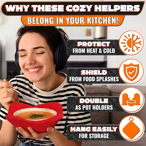 Safe for Hot & Cold Dishes Microwave Bowl Holder: Microfiber fabric insulates heat, letting you lift bowls or plates easily. This hot bowl holder works as Christmas trivet keeping fingers protected