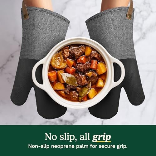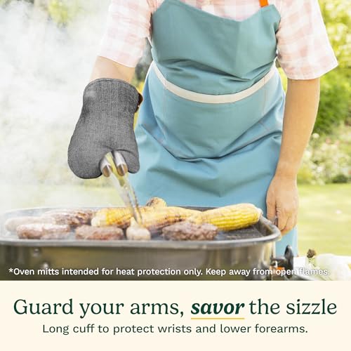 BAKE SAFELY WITH LONG CUFF: Designed with an extended cuff to protect your wrists and lower forearms from burns; these oven mitts are perfect for safely reaching into the oven and handling hot trays or dishes, making them an essential part of your kitchen oven mitt set.