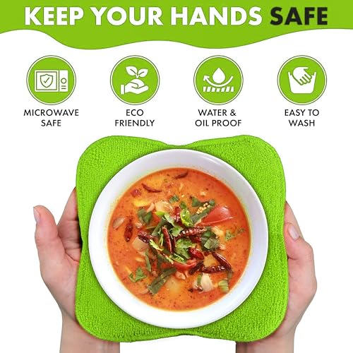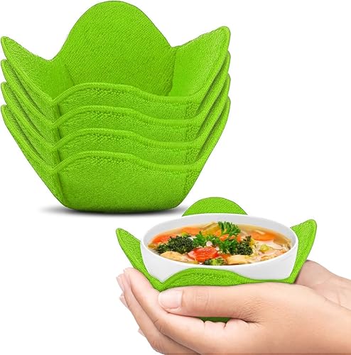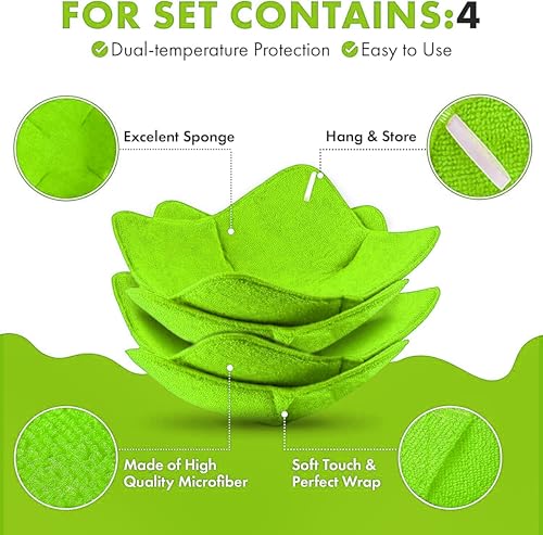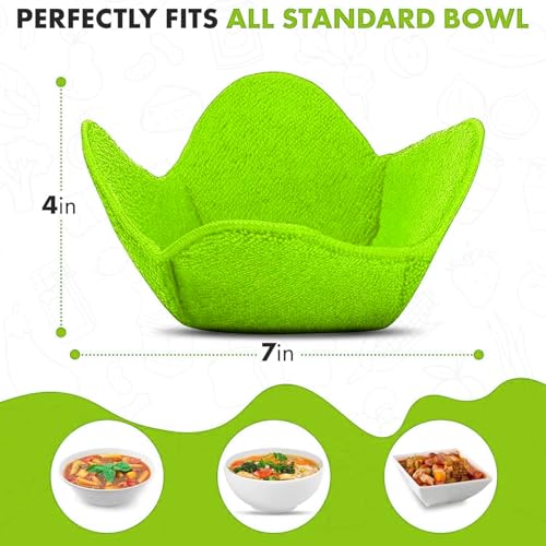 Microwave Bowl Cozies Warmers Food Microfiber Heat Resistant Food Warmer Set Microwave Safe Hot and Cold Bowls Holder Without Burning Your Hands Set of 4 Microwave Bowl Holders (Green)