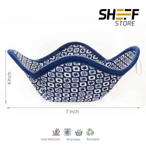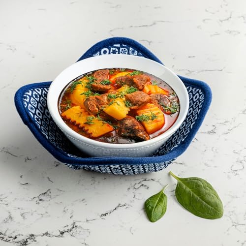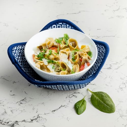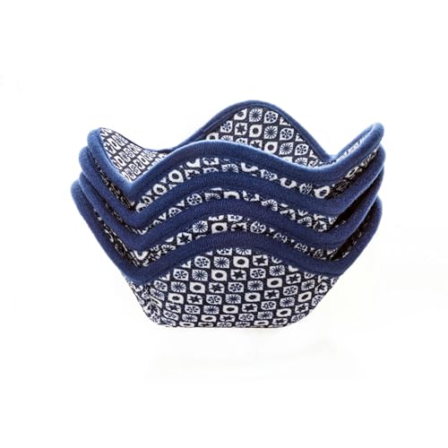 Microwave Bowl Cozy Holders Set of 4 – for Hot and Cold Bowls, Plates and Dishes Bowl Holder for Microwave (Navy and White)
