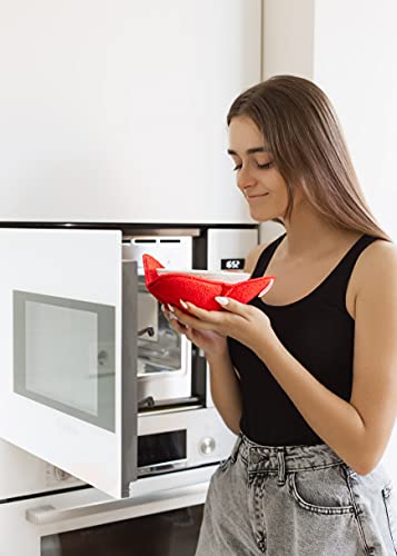 Sheff Microwave Bowl Cozy Holders Set of 4 – Durable and Reliable for Hot and Cold Plates and Dishes – Ideal Household Gift (Red, 7 inch)