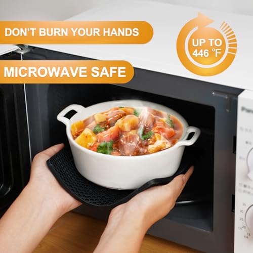 Silicone Trivet Mats, 4 Pack Hot Pads Pot Holders for Kitchen, Heat Resistant Non-Slip Trivets for Hot Dishes, Hot Pots and Pans, Countertop, Table, Food Grade Silicone & BPA Free, Black