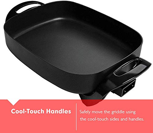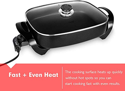 Caynel Professional Non-stick Copper Electric Skillet Jumbo, Deep Dish with Tempered Glass Vented Lid, Upgrade Thermostat, 16”x 12”x 3.15”- 8 quart (16 * 12 Black)