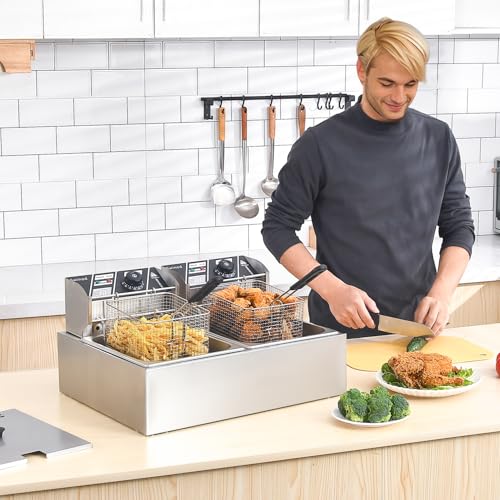Commercial Deep Fryer with Baskets, 3400W 12.7QT/12L Thickened Stainless Steel Countertop Electric Oil Fryer, Large Capacity with Temperature Control