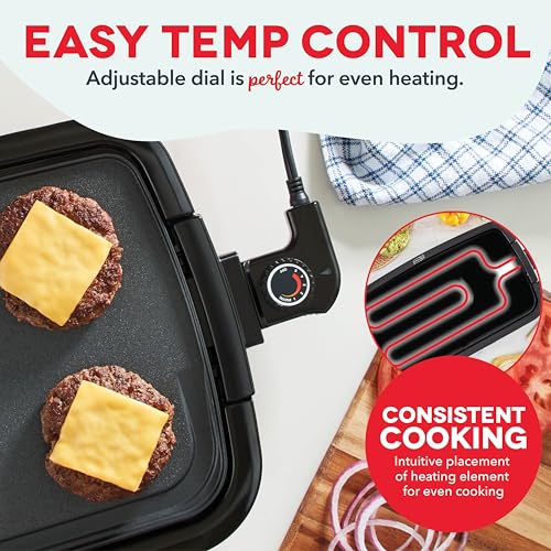 INCLUDES: Amazon Exclusive, the 1500W Dash Deluxe Everyday Griddle includes anti-slip feet, drip tray, removable nonstick heating surface, recipe book and recipe database access (all non-electric parts are easily wiped clean).