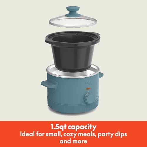 bella 1.5 Qt Slow Cooker with 3 Heat Manual Control, EverGood™ Ceramic Nonstick Coating, Dishwasher Safe Stoneware Pot and Tempered Glass Lid, Tangle Free Cord Wrap & Cool Touch Handles, Surf