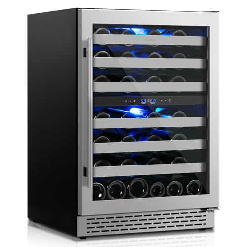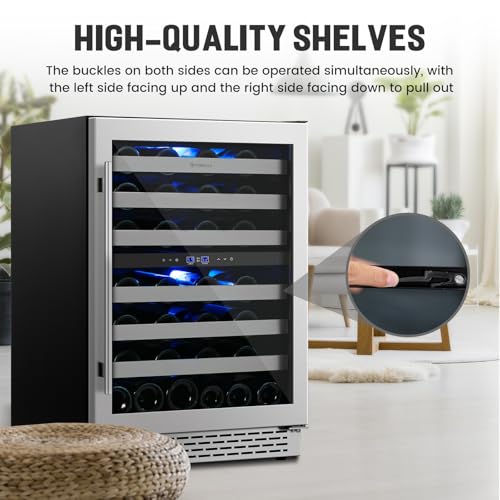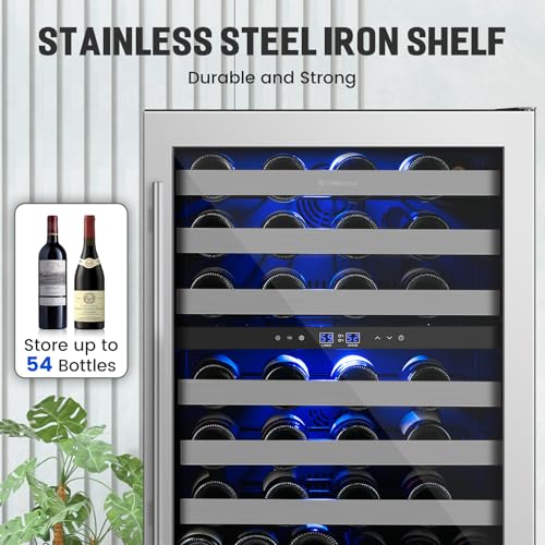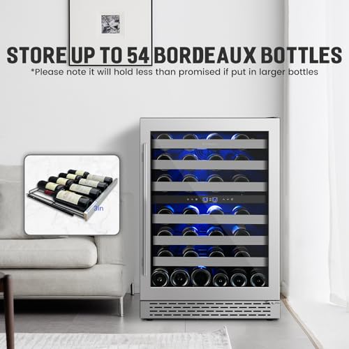 24 Inch Wine Cooler Refrigerator Under Counter,54 Bottle Dual Zone Wine Cooler,New Upgrade Built-in/Freestanding,Seamless Reversible Stainless Steel Door Wine Fridge for Home and Kitchen