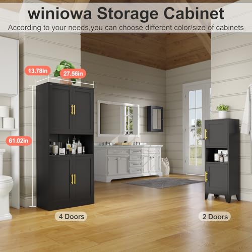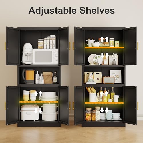 61″ Tall Kitchen Pantry Storage Cabinet, Metal Bathroom Storage Cabinet with Doors and Adjustable Shelves,Black Kitchen Cabinets with Microwave Stand, Large Cupboard for Bathroom Dining Room
