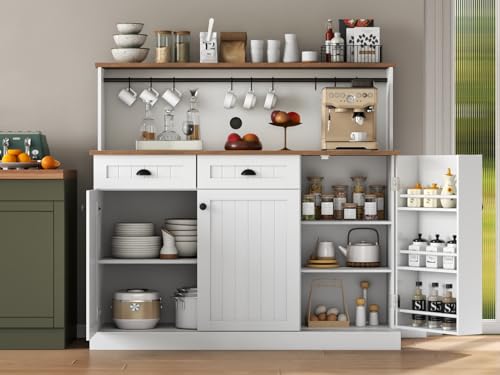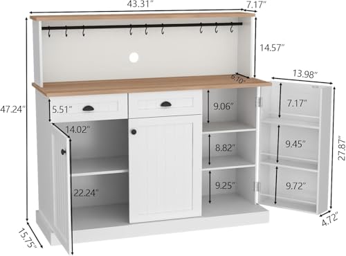 Versatile Buffet Cabinet – This furniture piece is incredibly versatile, adding value and style to your home bar and decor. With its refined Farmhouse style, it seamlessly complements different design themes. Whether you require a wine bar cabinet, coffee station, microwave stand, or kitchen sideboard buffet cabinet, this piece offers endless possibilities to optimize your living space and enhance its functionality. Its adaptability allows effortless customization to meet your specific needs. Embrace the flexibility and aesthetic charm of this remarkable buffet cabinet, making it the focal point of your home.