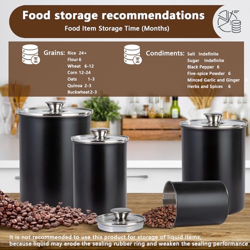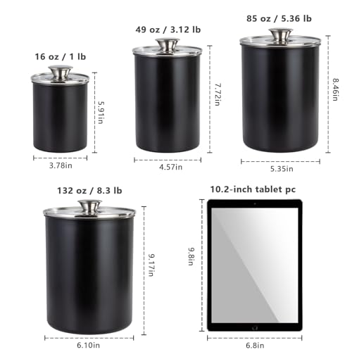 malmo Stainless Steel Food Canister Set of 4-Piece, 40.5/71/98/132 Ounces,Airtight Containers with Glass Lid for Tea,Coffee,Sugar,Flour,Pantry Kitchen Storage Storeroom Counter (Black)