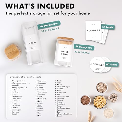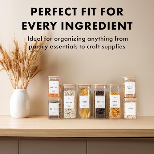![Square Glass Storage Containers with Bamboo Lids 12-Pack (4x 30 oz, 8x 17 oz) Airtight Storage Jars with Lids for Food, Stackable Kitchen Canisters with 114 Labels for Pantry [Thicker Glass 3mm] - Image 6](https://m.media-amazon.com/images/I/51Or7yzWAJL.jpg)