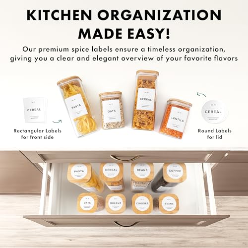 COMPLETE STORAGE SOLUTION: This all-in-one set includes 12 glass storage containers with lids, featuring 12 durable bamboo lids and 100 pre-printed labels for quick identification and 14 blank labels for your custom needs. Perfect for keeping your kitchen organized and your food fresh.
