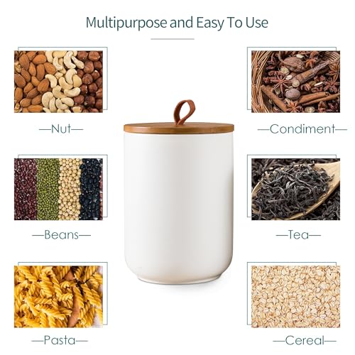 Functional Kitchen Decor – The ceramic canisters is not only functional, but also serve as elegant kitchen decor. The minimalist and stylish design fits seamlessly into any kitchen aesthetic, whether modern, farmhouse, or vintage. The ceramic jar combined with the wooden lid and leather handle, adds a natural touch, making these canisters a decorative piece for your countertop or pantry.