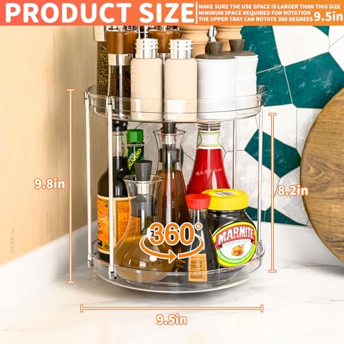 9.8″ Tall 2 Tier Lazy Susan Organizer for Countertop,Cabinet and Pantry Shelf,Double Clear Spice Turntable & Rotating Spice Rack Organization and Vitamin & Medicine Cabinet Organizers Carousel
