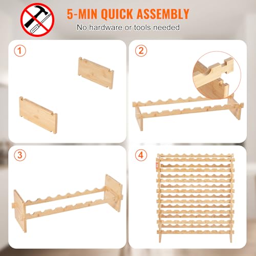VEVOR 72 Bottle Upgrade Modular Wine Rack, Continuously Store Pinot Bottles, 8-Tier Bamboo Wood Storage Rack, Floor Freestanding Wines Holder Display Shelf, Wobble-Free Shelves for Kitchen Bar Cellar